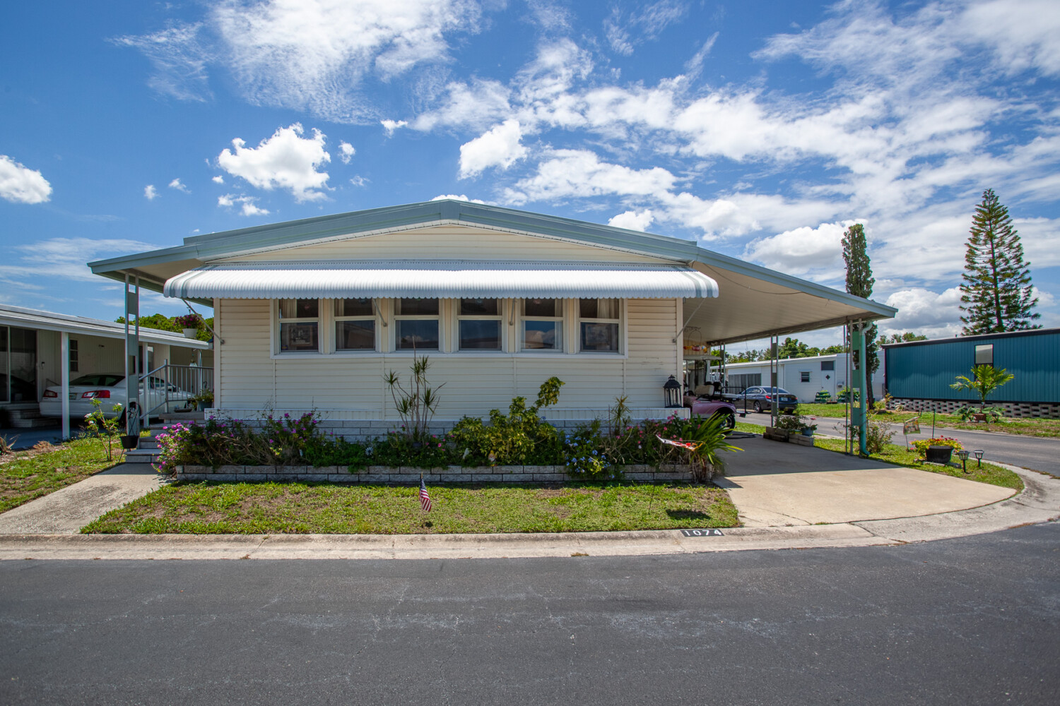 Circle kitchen floor plan with plenty of counter and cabinet space for cooking. The dining area is adjoined by the kitchen. Extra-large living area with plenty of sunlight. New windows thru out the home. Both bedrooms can fit a king-size bed and have large closet spaces. Both bedrooms have access to the bathroom from the room. Washer and dryer are located inside the home. There is an extra-large closed in Florida room. Plus, a supersize storage area.