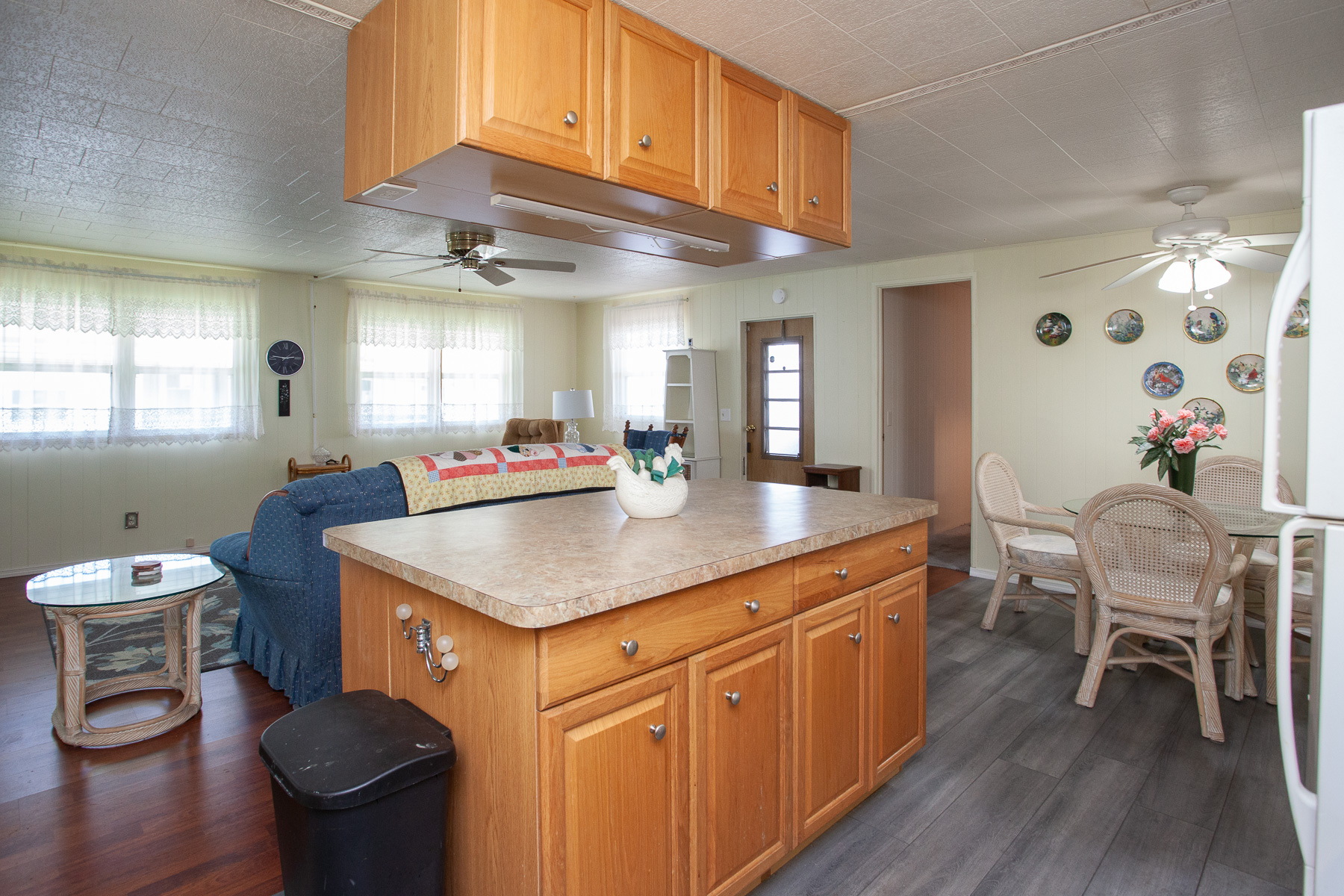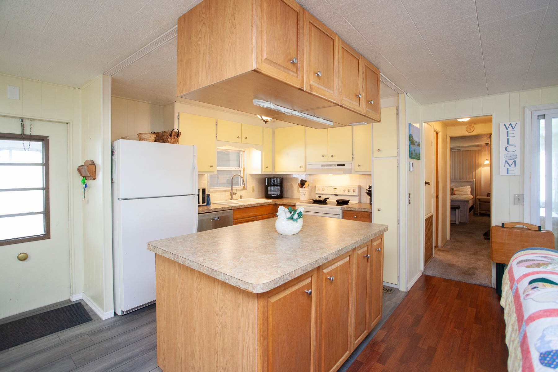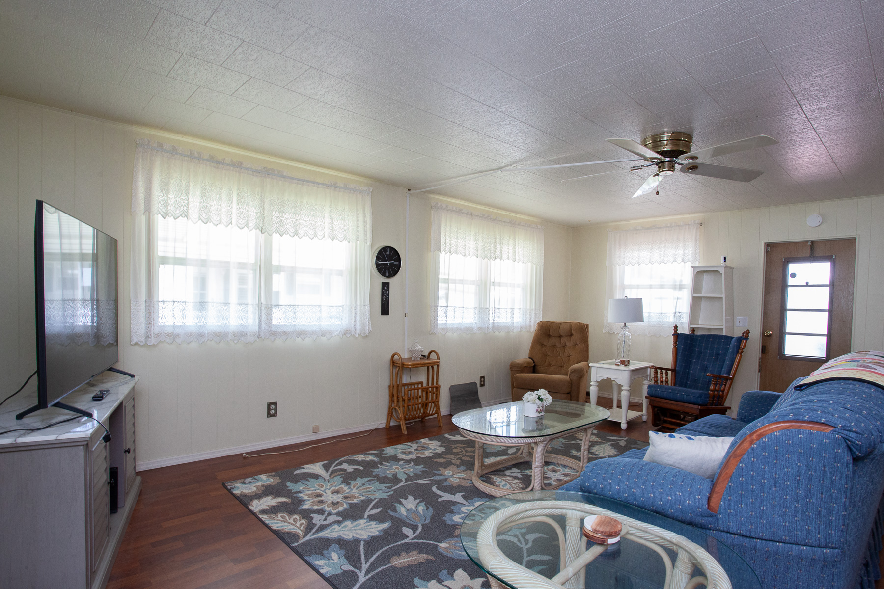 – This unit is a 1973, Semi-open floor kitchen with a breakfast island. Oak cabinets with all white appliances. Separate dining area. The bedrooms have plenty of privacy which are located at both ends of the home. The Florida room is closed-in adjoined to the living area. This space could be used as a third bedroom, office space or an additional family room. Plus, an outside screened in porch area.