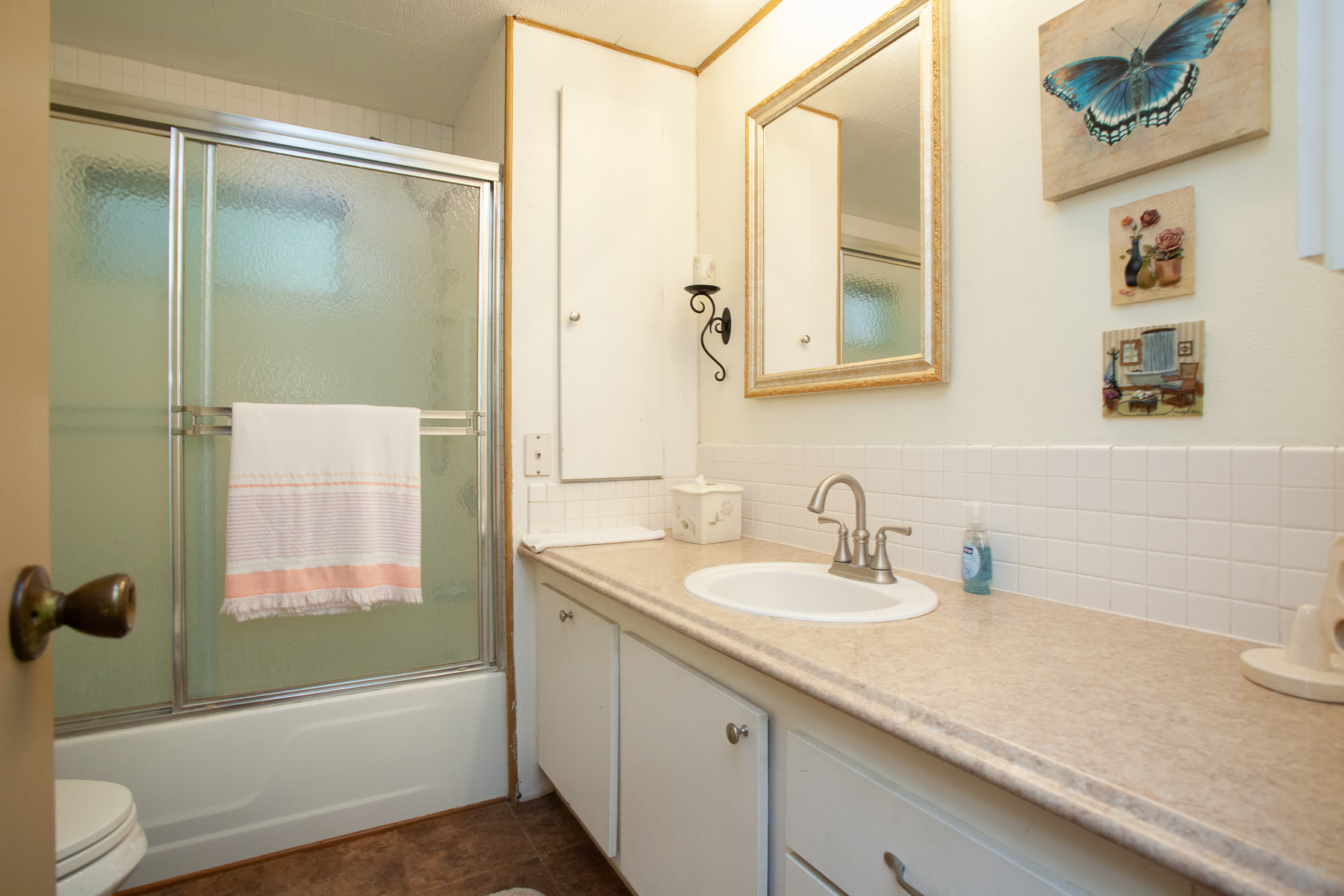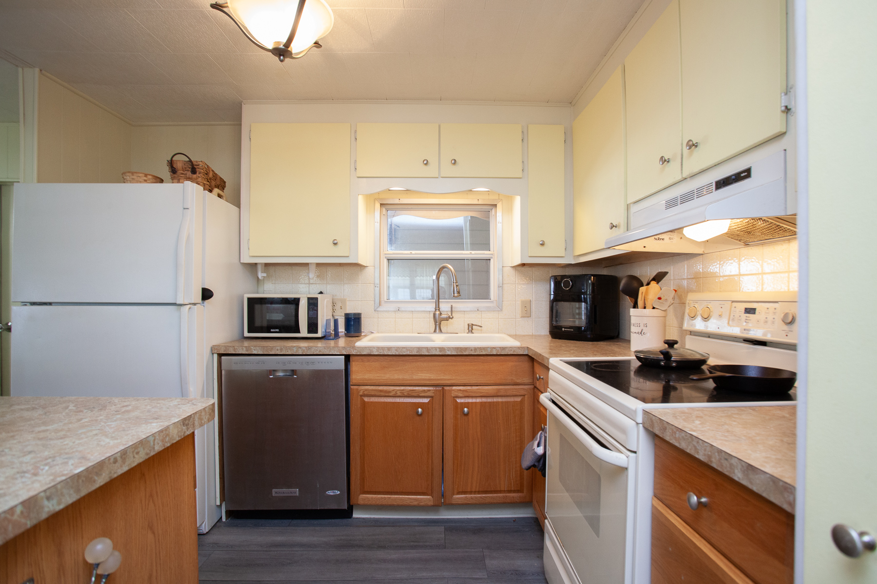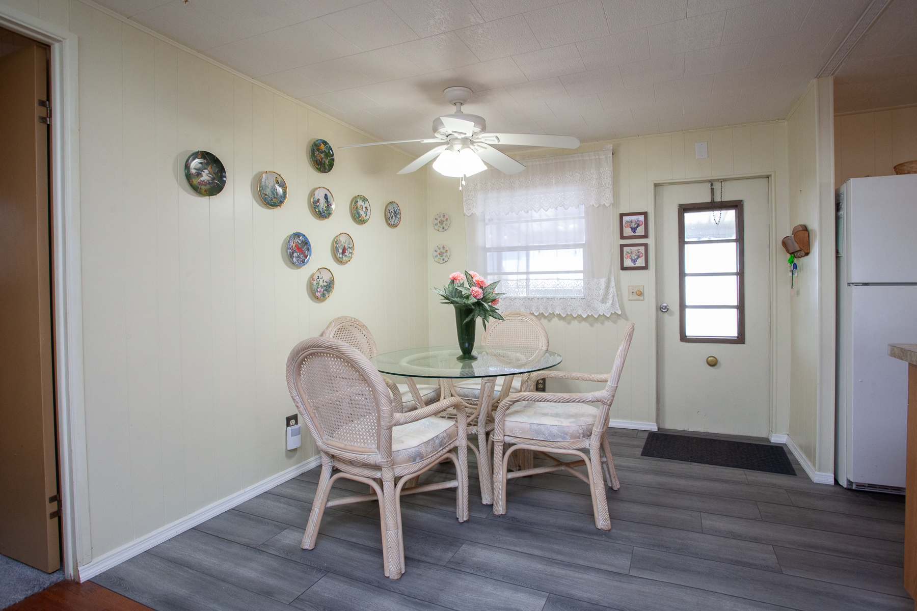 – This unit is a 1973, Semi-open floor kitchen with a breakfast island. Oak cabinets with all white appliances. Separate dining area. The bedrooms have plenty of privacy which are located at both ends of the home. The Florida room is closed-in adjoined to the living area. This space could be used as a third bedroom, office space or an additional family room. Plus, an outside screened in porch area.