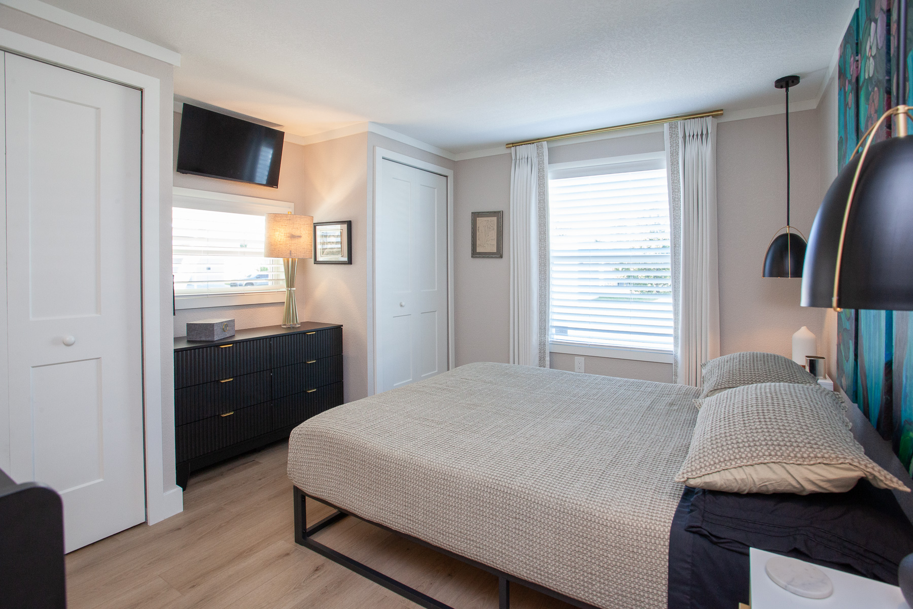 Fully remodeled 2024. New kitchen with corium countertops. New stainless-steel appliances. All customs lighting thru out the home. The bedroom has a new tiled walk-in shower. The guest bedroom is located on the other side of the home. The guest room has a clawfoot tub. All new floors, new drywall. Washer and Dryer inside the home. Tankless water heater. EV car charger. No neighbors behind the house.