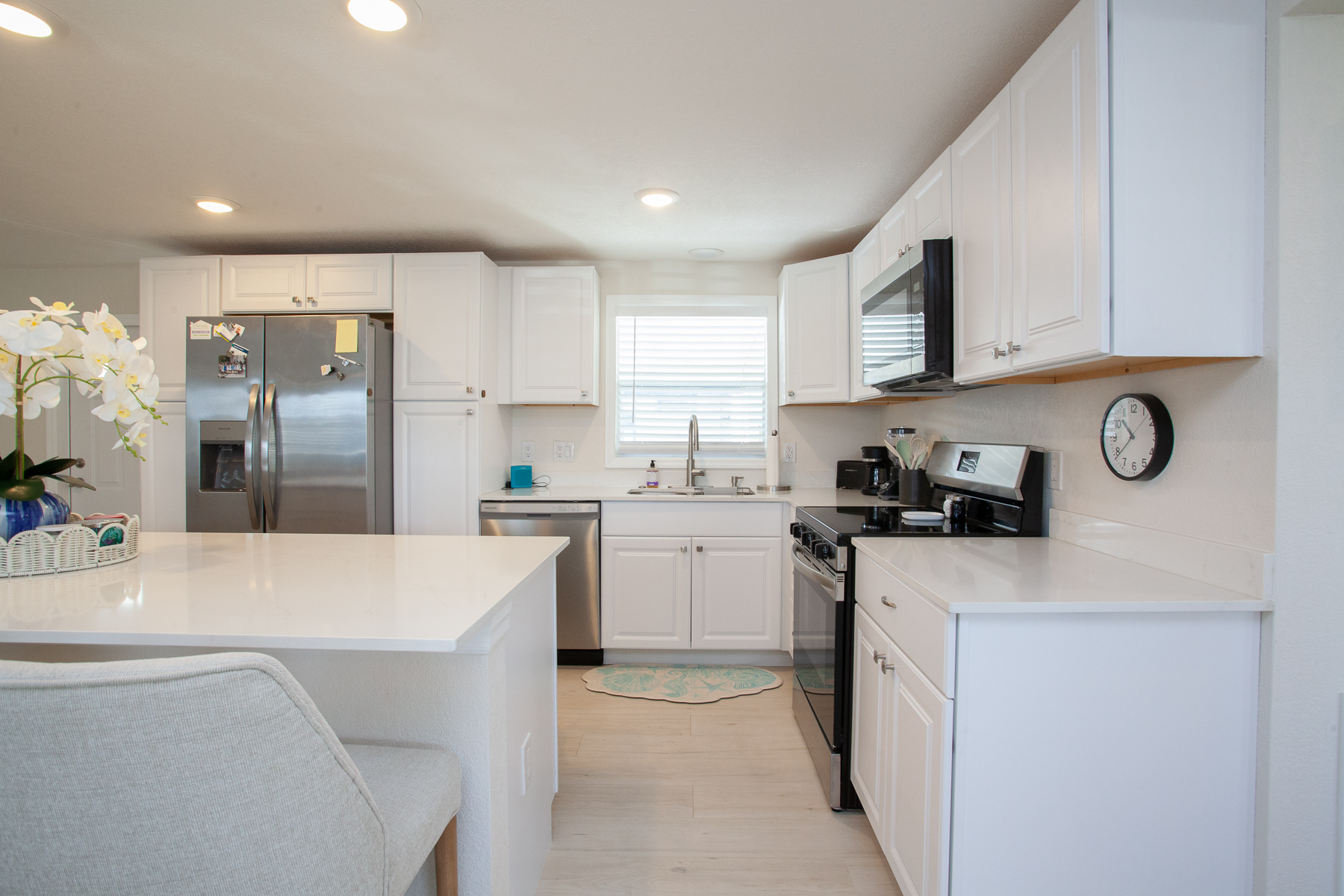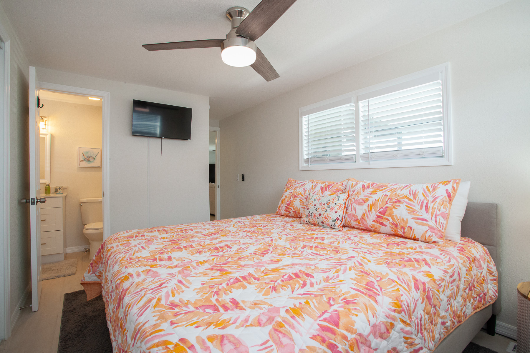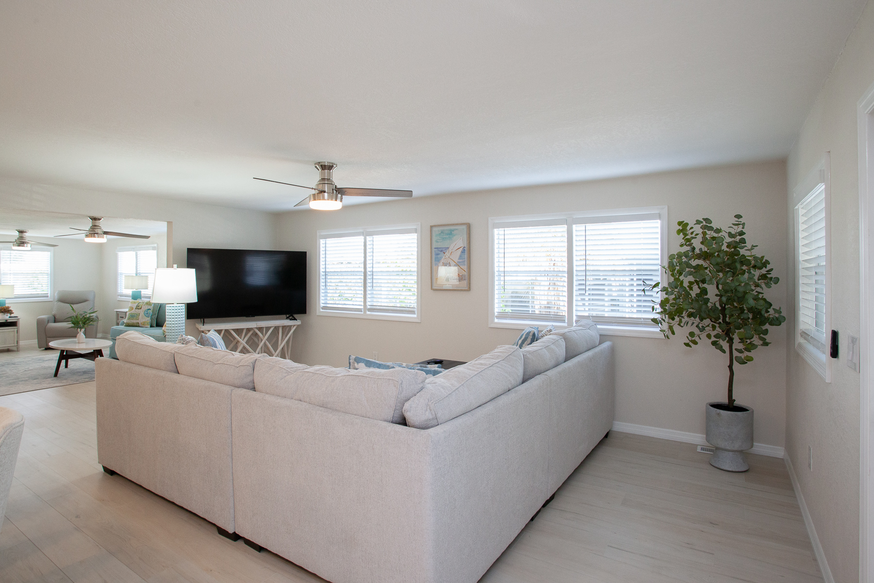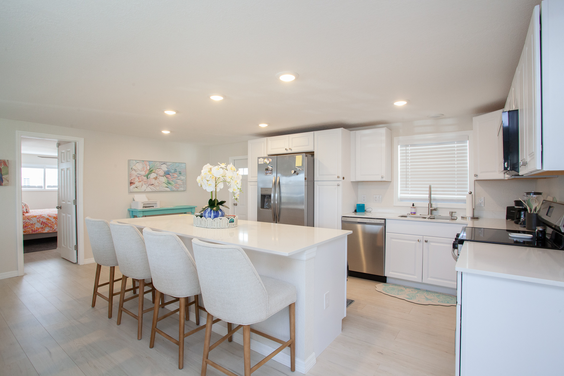 This unit is 1972, 1156++ sq ft. Fully updated 2024. Open floor kitchen plan. Extra-large breakfast bar located in the middle between the kitchen and living room area. Granite countertops with new Stainless-steel appliances. This home offers an additional living space located at the end of the living room. The primary bathroom has a beautiful, tiled walk-in shower. The guest bedroom is located on the other side of the home, with a tiled walk-in shower. Open screened-in front porch. Plus, a beautiful brick open air patio on the side of the home. New roof over. Tankless water heater. This home comes furnished with all new furniture.